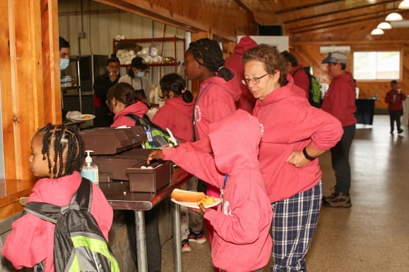 There is no menu at Camp Susquehanna. The staff provides campers with multiple stations lined with various main courses, drinks, snacks, and desserts with the option to choose for themselves. Outside of mealtimes, snacks and drinks are always available, and campers are always welcome to take food to go. Food insecure children tend to hoard food but having full access at camp helps them feel secure.