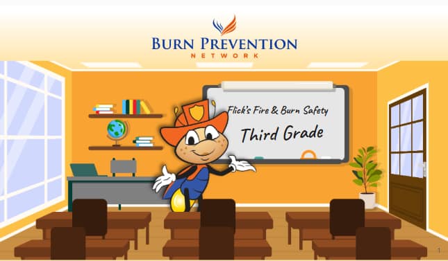 Flick’s Fire and Burn Safety Program for grade levels 1-5 includes a complete set of lessons that are tied to the academic standards for education. If your school has received our materials, please be sure to visit your grade level page to pre and post test your students, and fill out the program evaluation form!